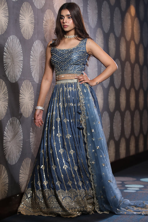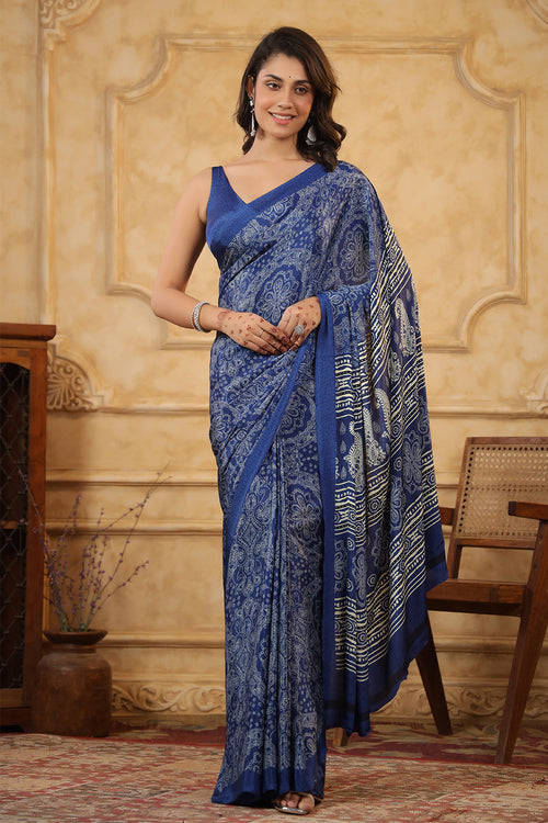 Blue Color Crepe Printed Saree -