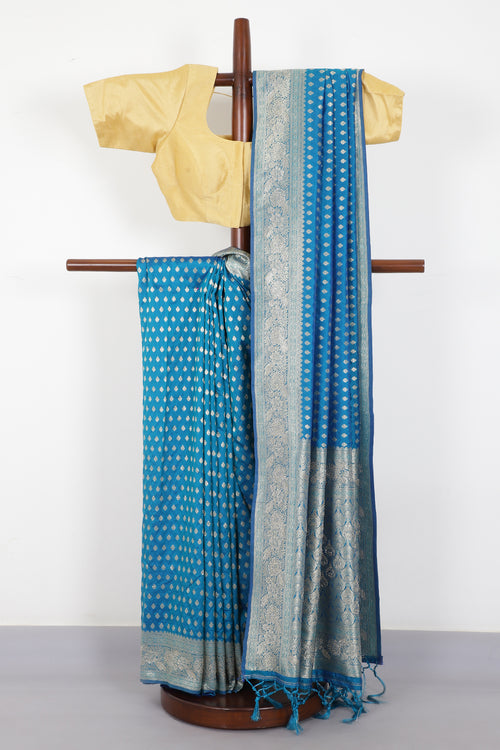 Pacific Blue Silk Banarasi Zari Woven Saree -