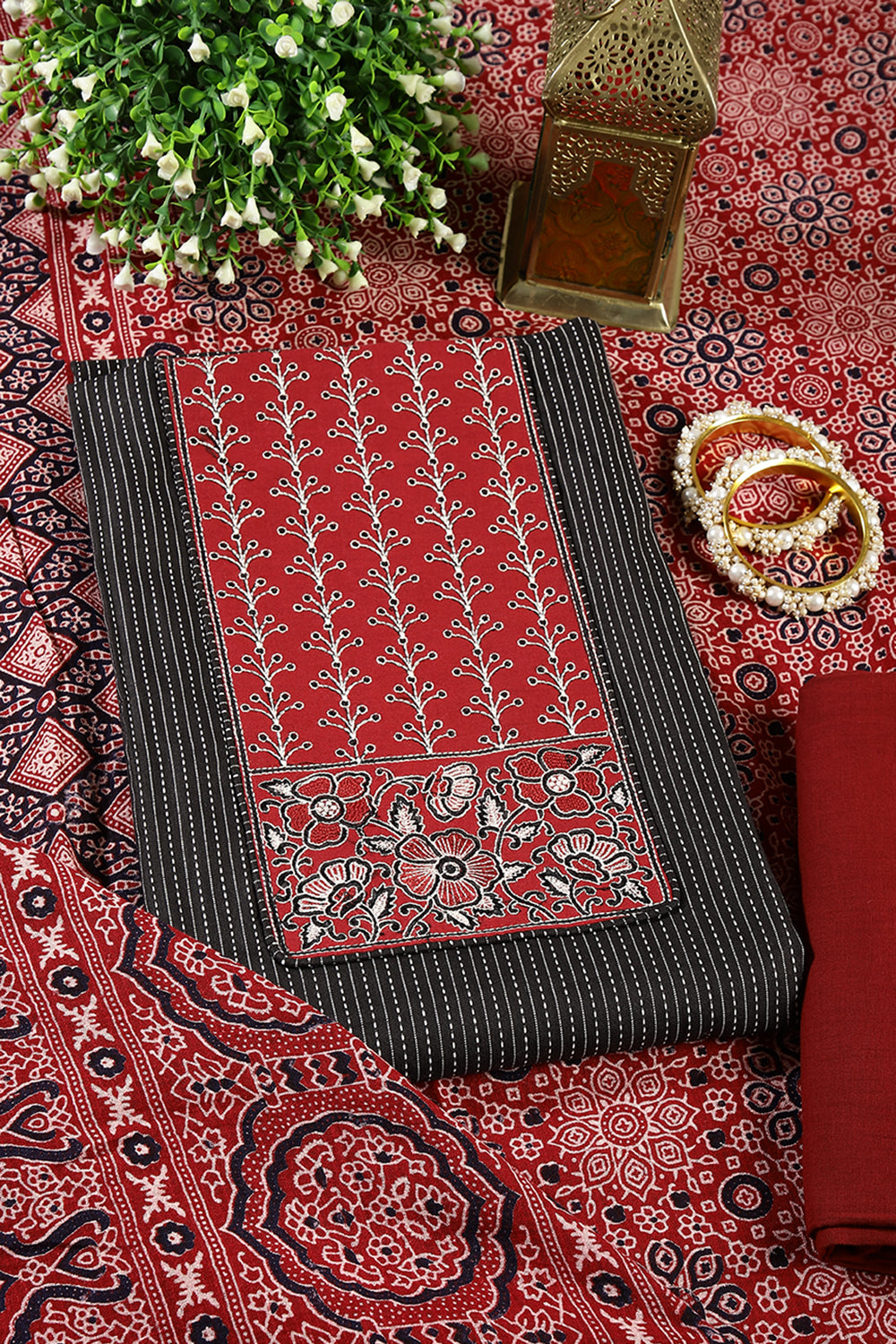 Black & Rust Color Twill Cotton Printed Unstitched Suit Material