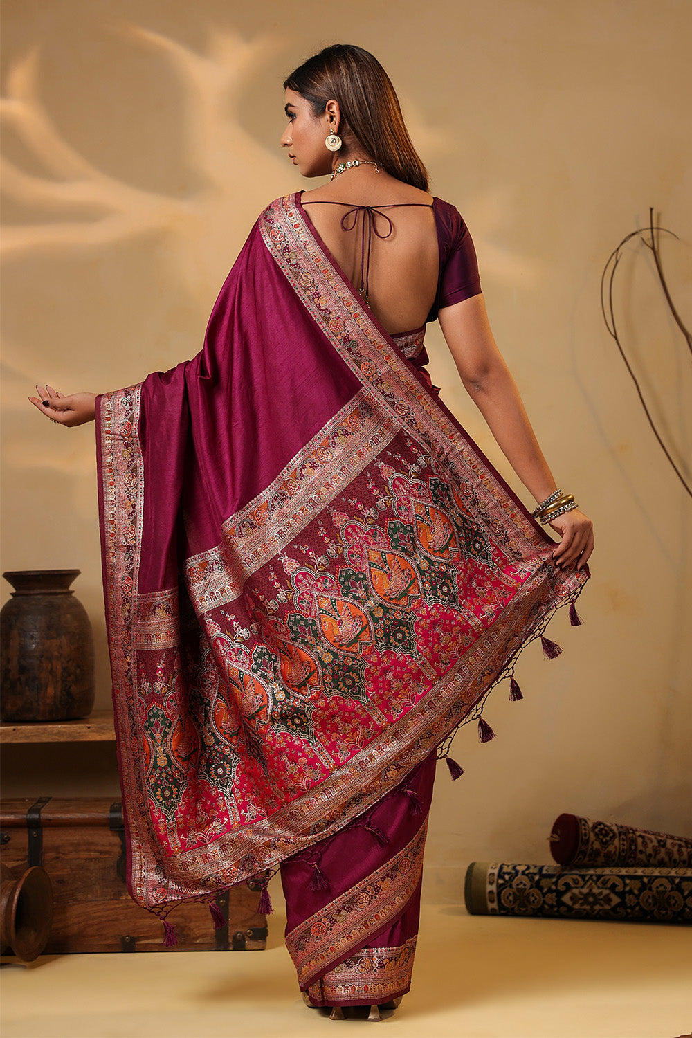 Dark Scarlet Soft Silk Kalamkari Woven Saree