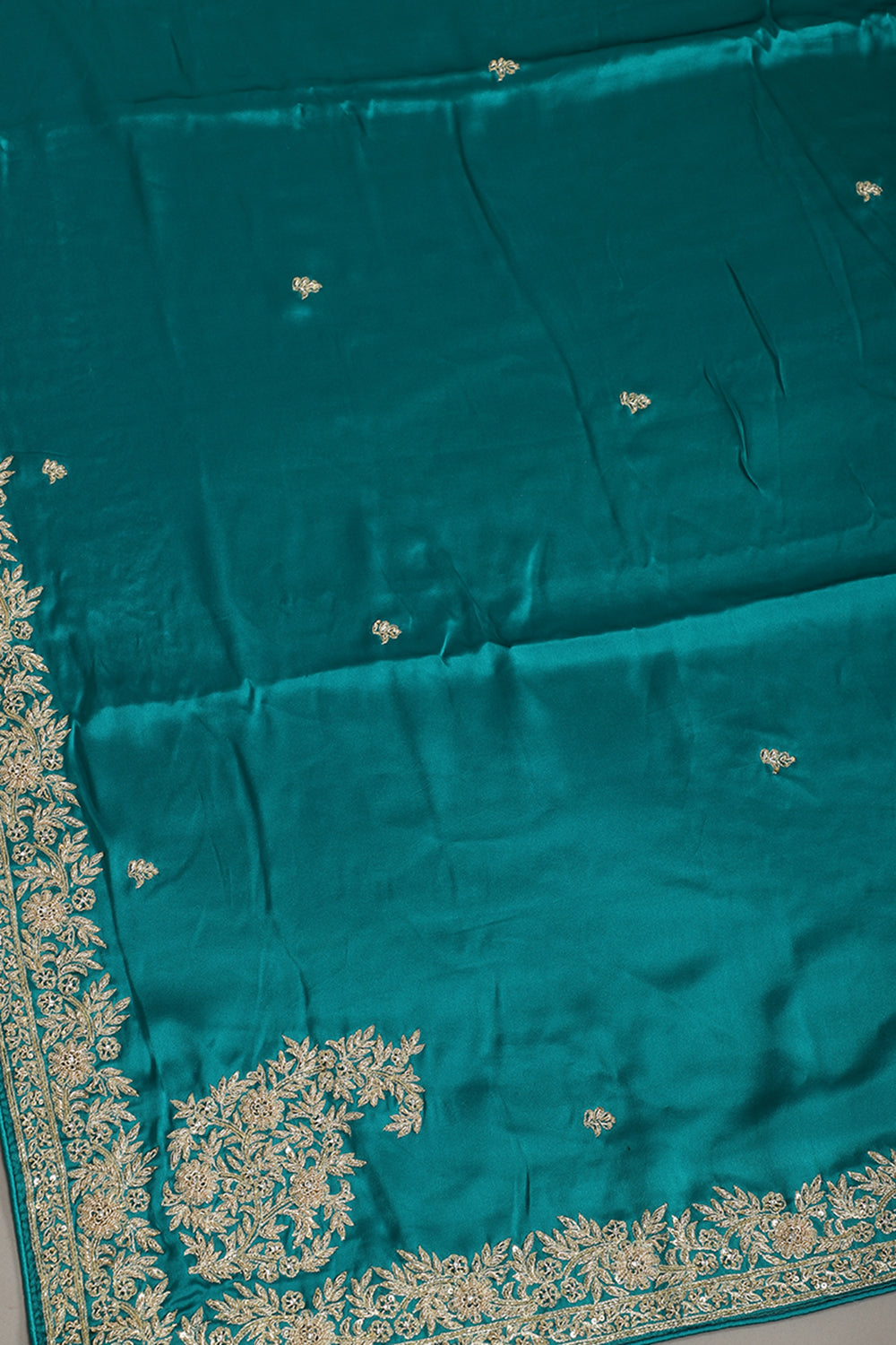Firozi Colr Pure Satin Crepe Saree with Zardozi Handwork