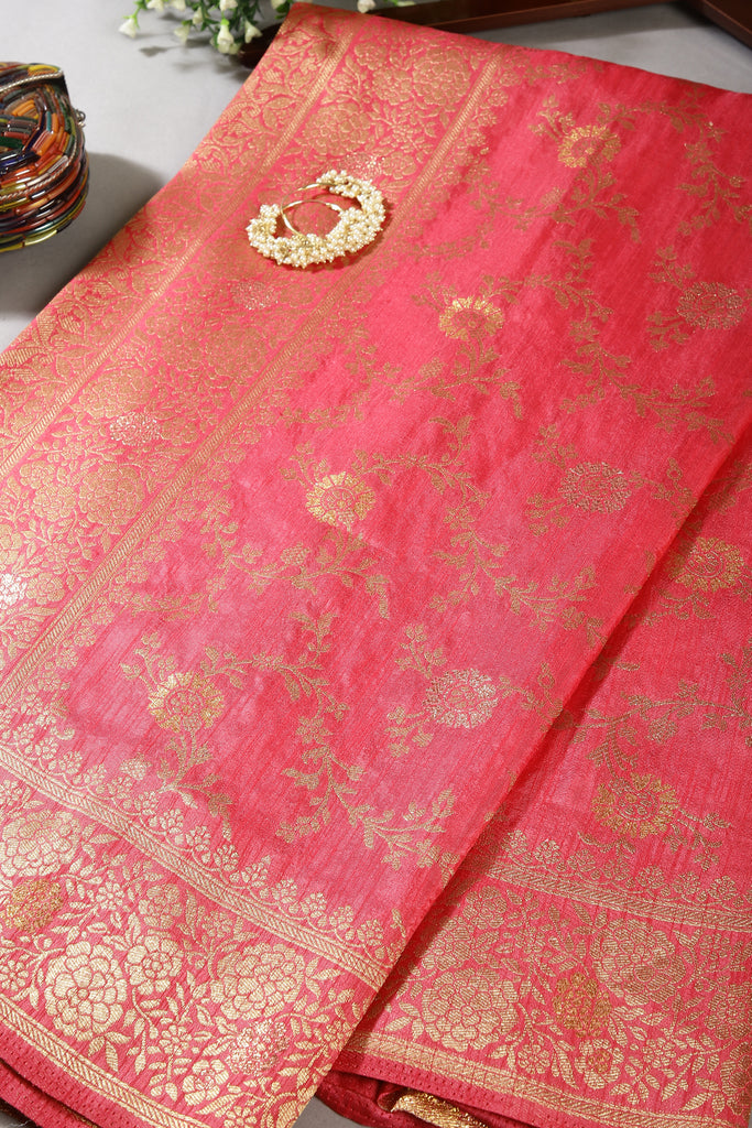 Light Carmine Pink Color Raw Silk Zari Woven Saree