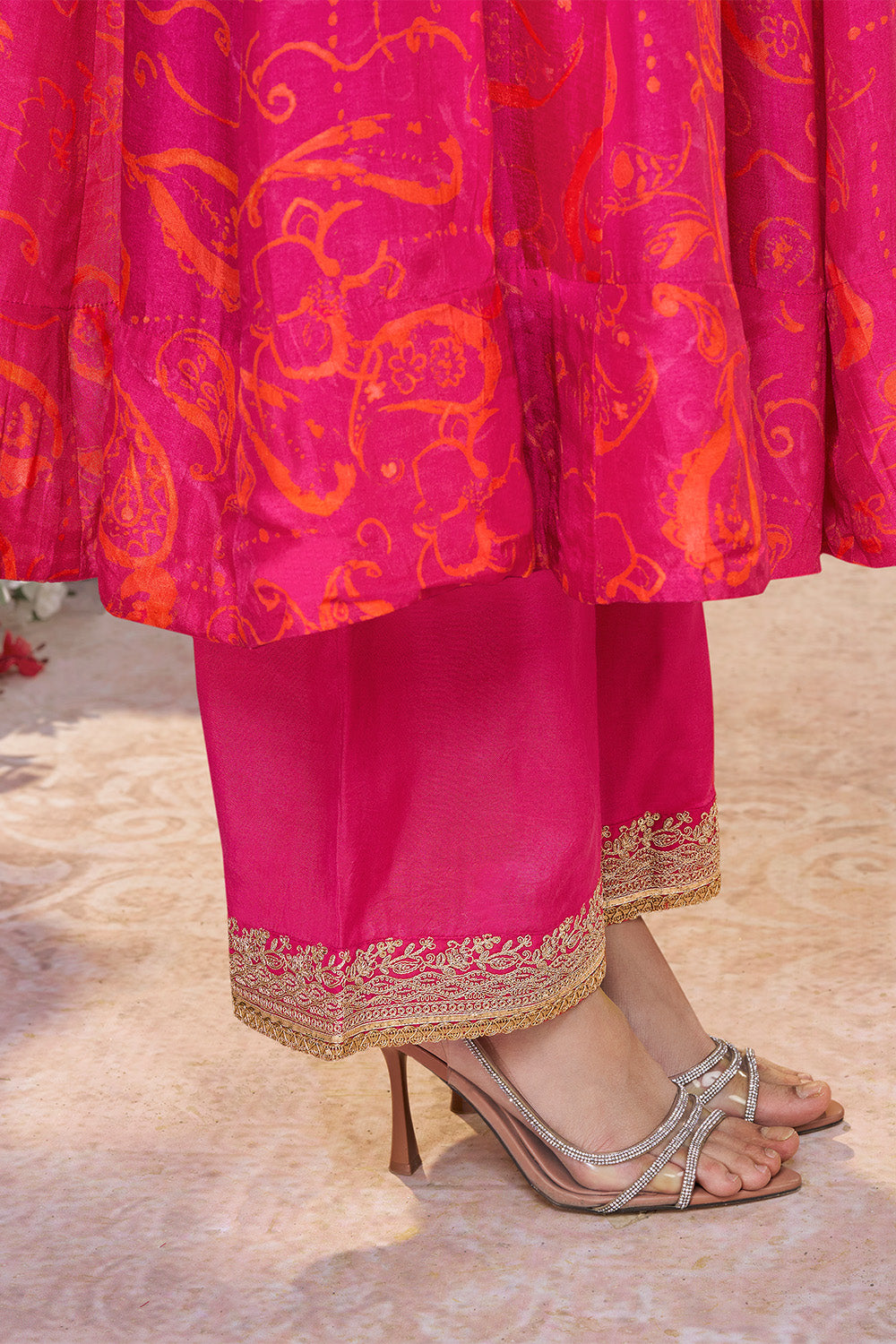 Magenta Pink Printed & Emboridered Anarkali Suit