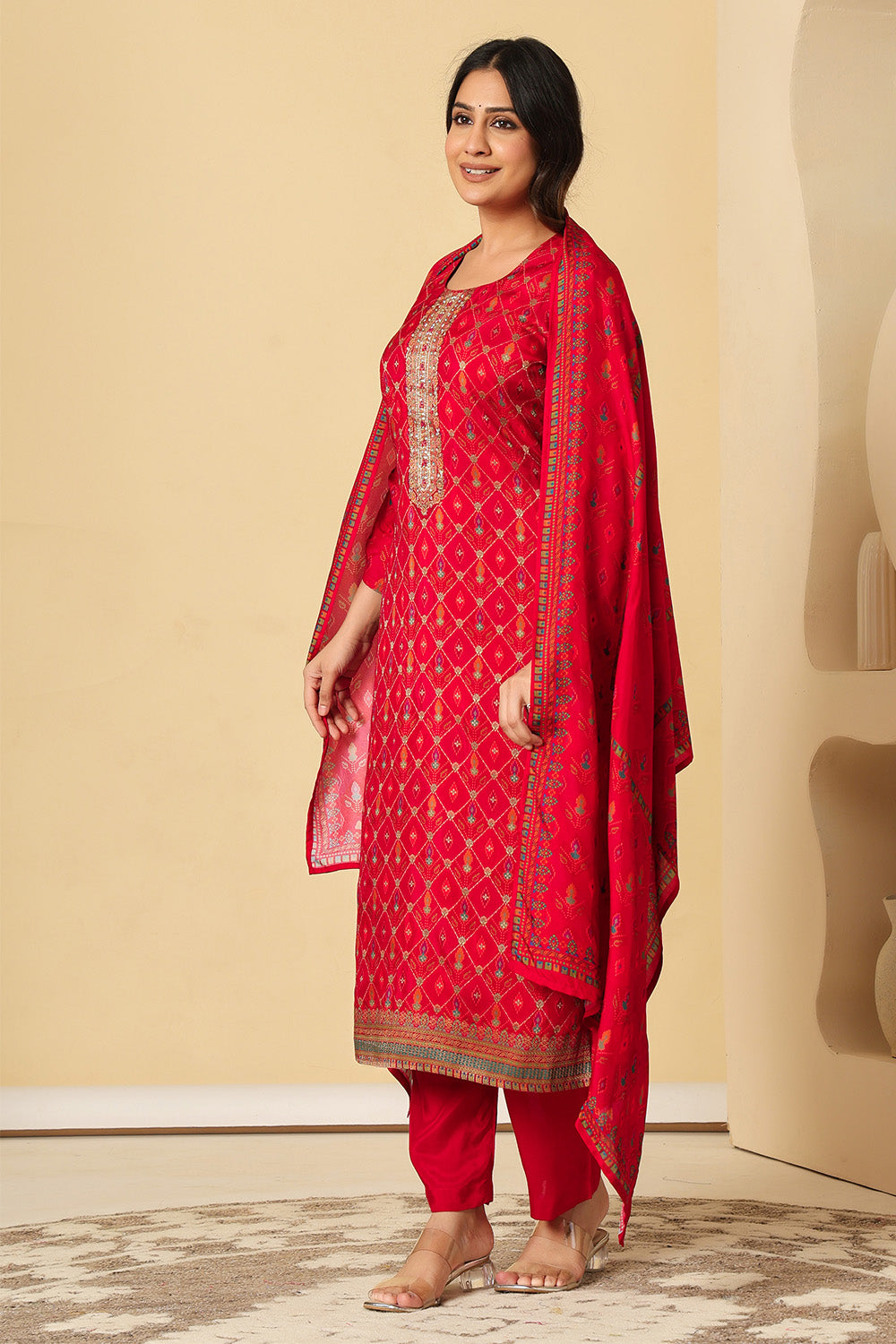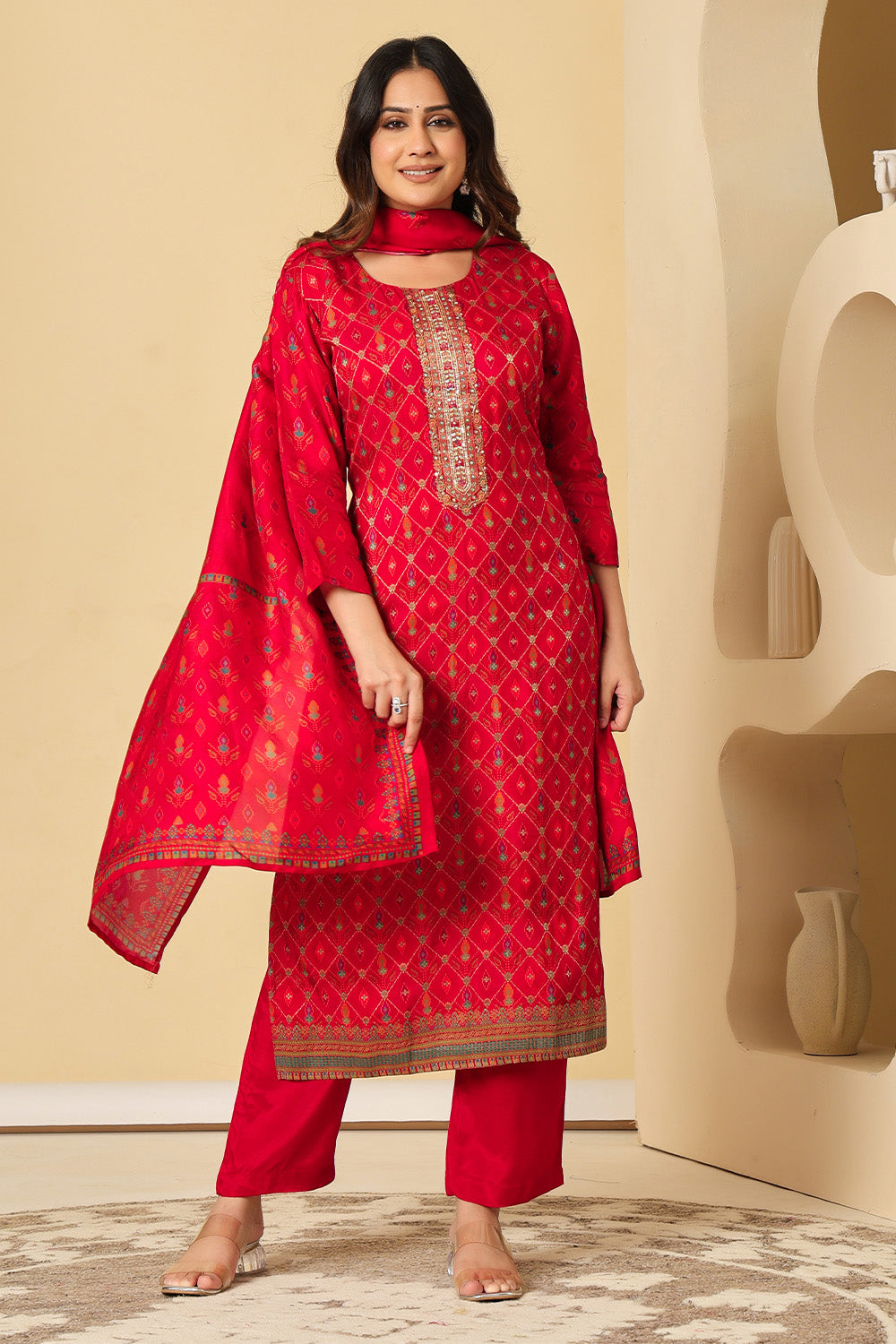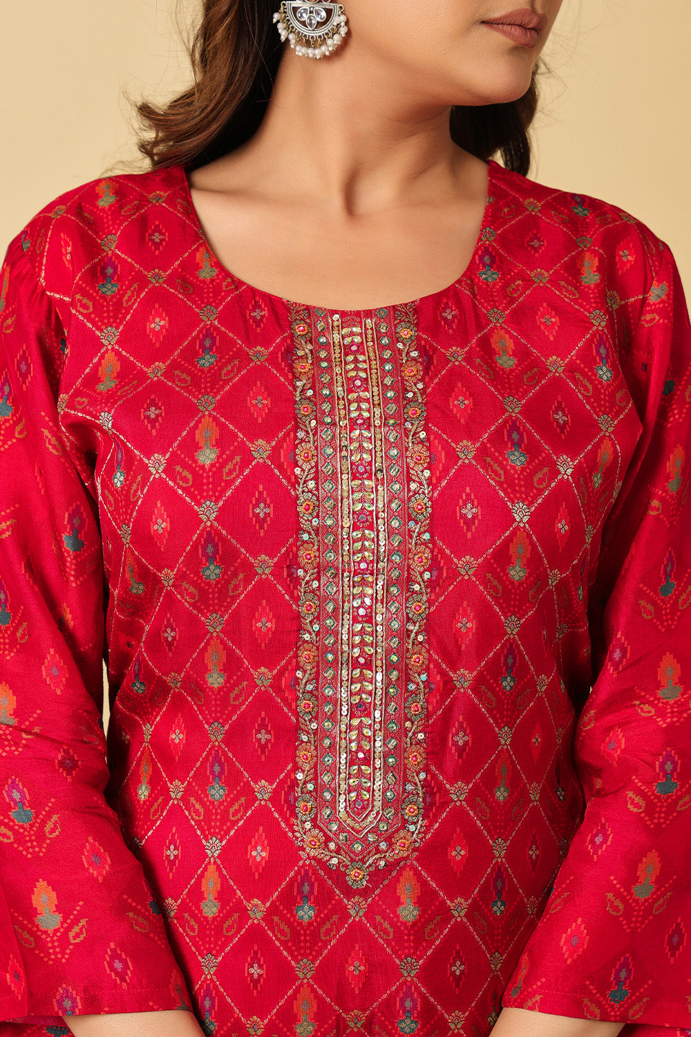 - Step into sophistication with this stunning Silk Suit Set that perfectly balances traditional allure with contemporary elegance.