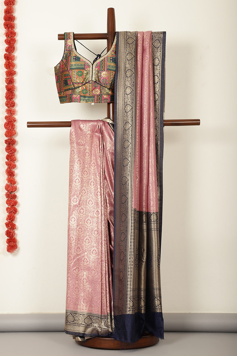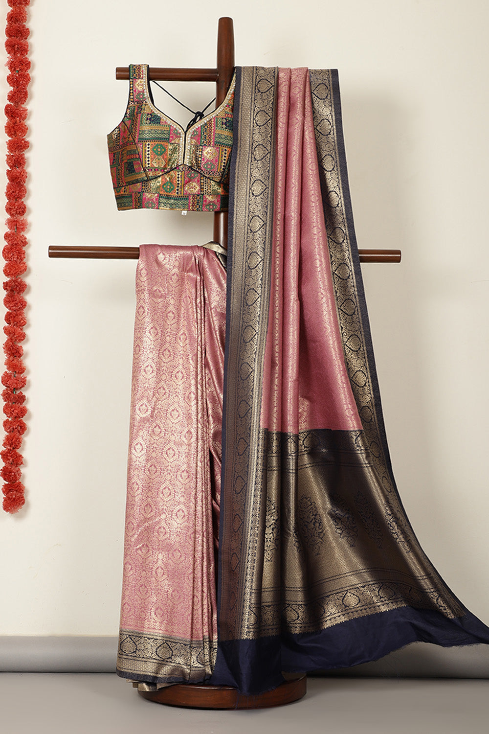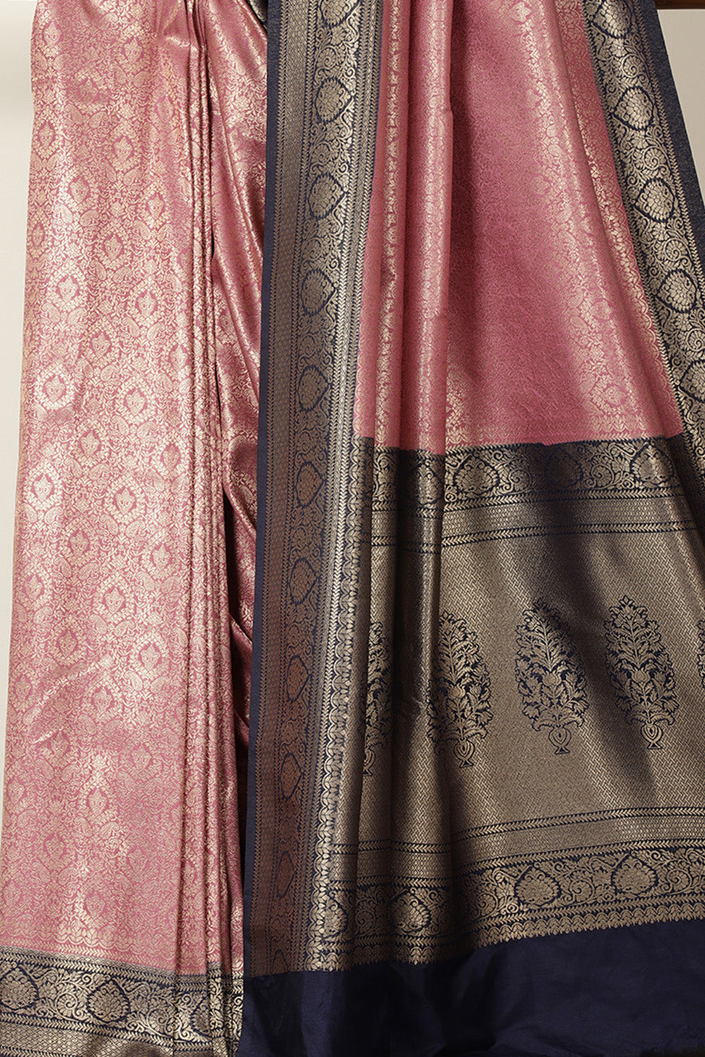 Mauve & Navy Dual Toned Soft Silk Zari Woven Saree