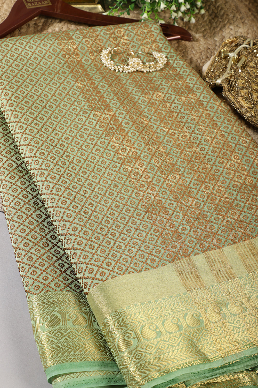 Mint Green Color Zari & Resham Weaving Silk Saree