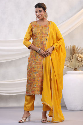 Mustard Color Embroidered Georgette Unstitched Suit Fabric