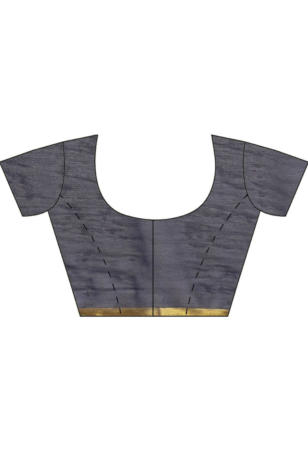 - The highlight of this saree is its luxurious golden zari border and floral print, which adds a regal touch and elevates its overall appeal.