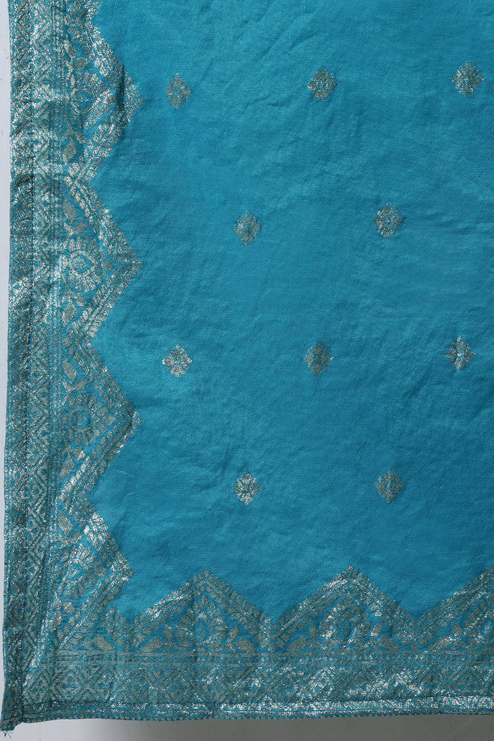 - The highlight of this ensemble is the luxurious zari woven dupatta, showcasing soft pastel blooms and traditional woven patterns that elevate the entire look.
